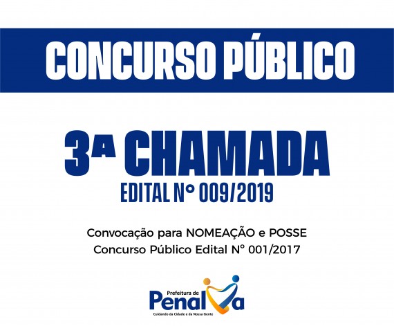 3ª CHAMADA, EDITAL Nº 009/2019 - CONVOCAÇÃO PARA NOMEAÇÃO E POSSE CONCURSO PÚBLI...