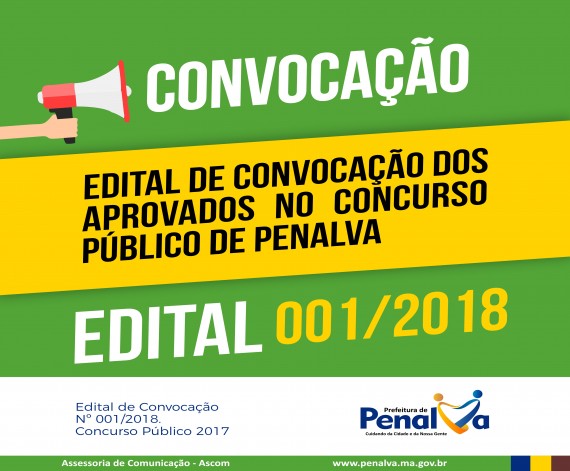 ATENÇÃO\nA Prefeitura Municipal de Penalva torna público o edital Nº 001/2018 com a convocação dos a...
