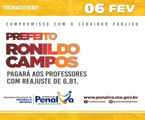 O Município de Penalva, através do Prefeito Ronildo Campos concede o reajuste integral, de 6,81% aos...